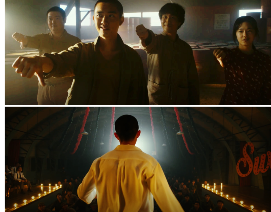 그렇게 잭슨이 풀려나고 스윙키즈 댄스단은 공연준비를 위해 연습에 몰두합니다. 그러나 다시 위기가 찾아옵니다. 새로 들어온 북한군 포로로 로기수의 형이자 인민영웅 로기진이 등장하고, 옆에서 앞잡이 역할을 하는 광국이 나타나 북한군 포로들에게 폭동 분위기를 유도하고 험악한 분위기가 연출됩니다. 특히나 로기수는 북한포로들로부터 미제 춤이나 춘다는 이유로 비난받을 받습니다.