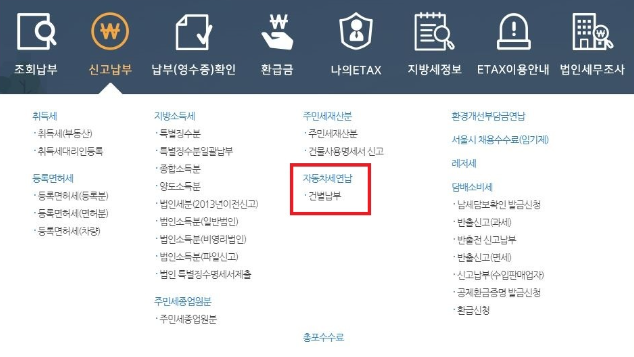 저 같은 경우 서울 소재의 차량으로 ETAX에서 세금을 납부하였고, 해당과정을 보여드리겠습니다.