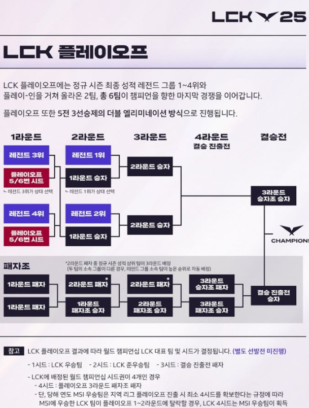 - 플레이오프는 총 6개 팀이 더블 엘리미네이션으로 맞붙음