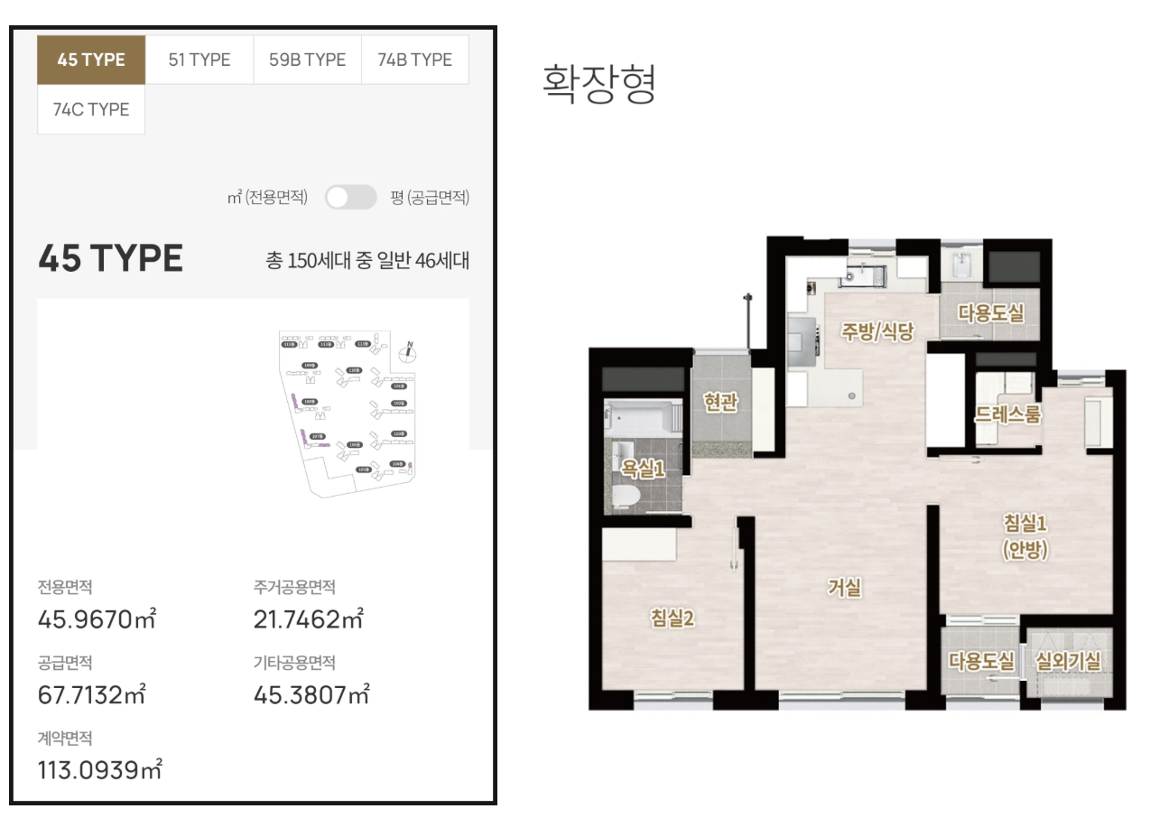 - 발코니 확장: 분양가에 미포함, 특정 주택형은 일부 층 확장 불가